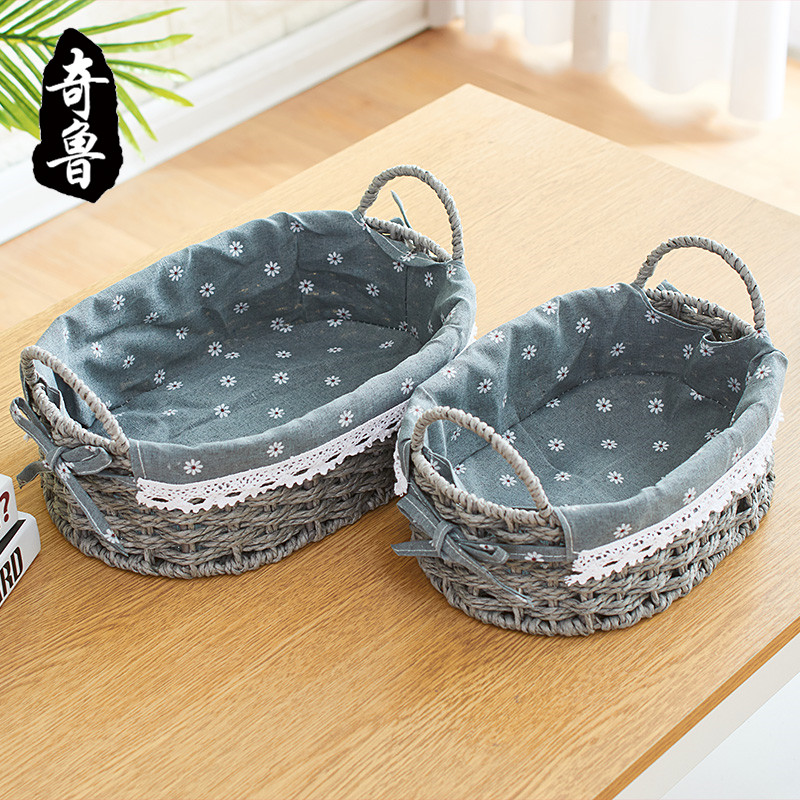 Storage basket straw weaving desktop snack storage basket rattan storage box fabric dried fruit candy tray key storage box Qilu