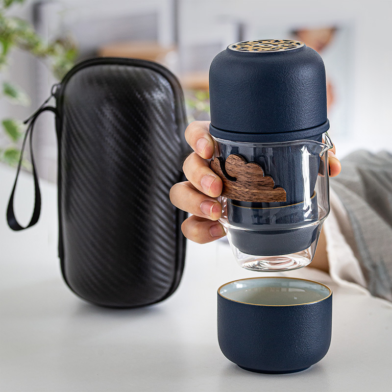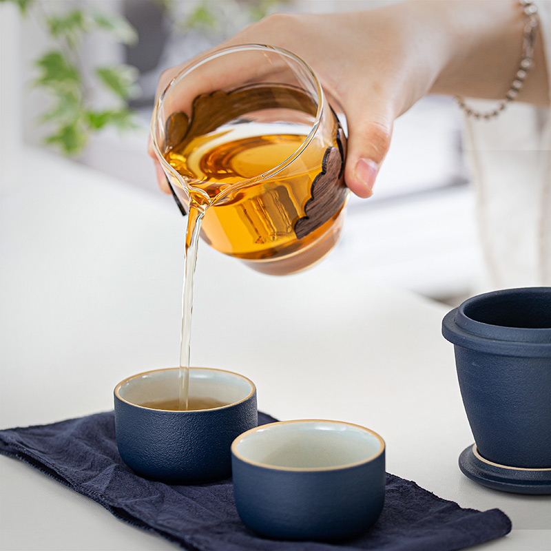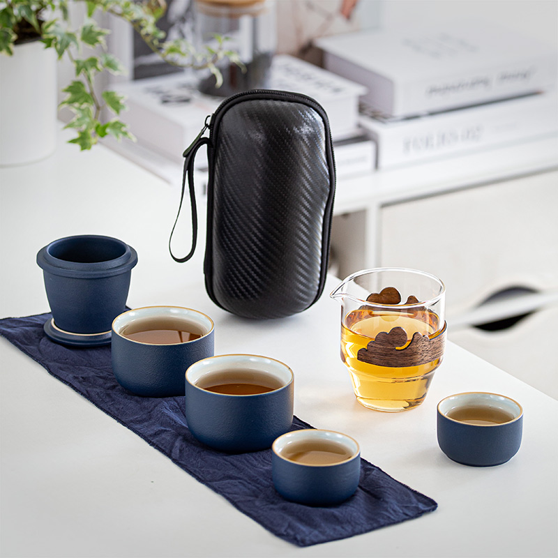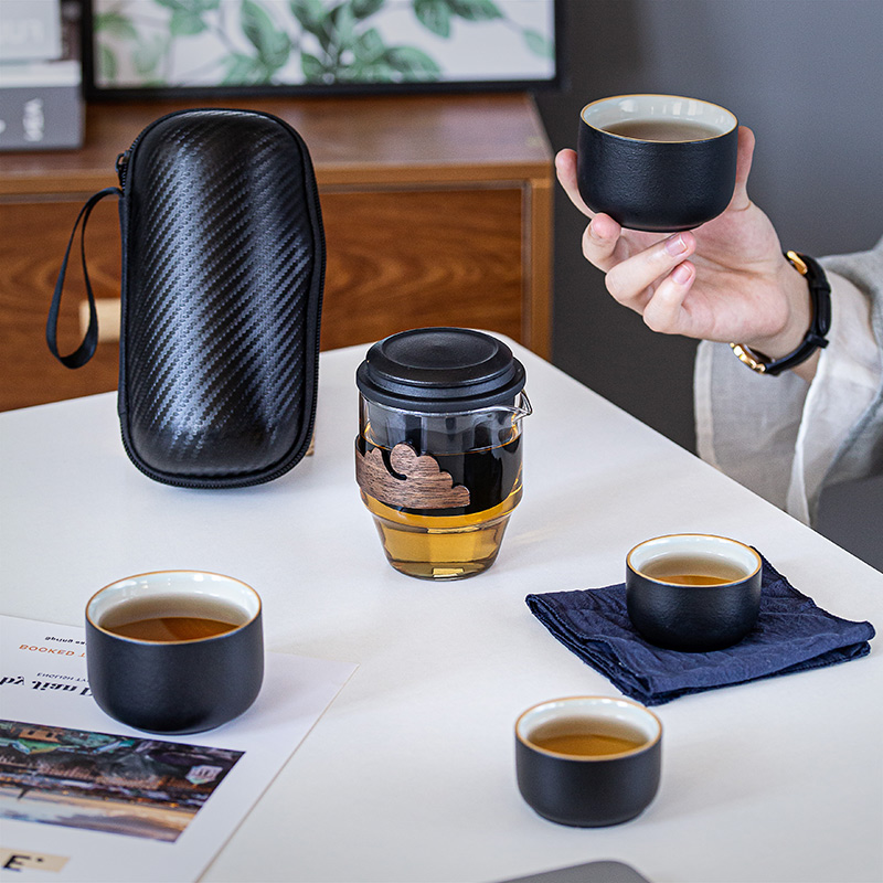 Crude Pottery One Pot Four Cups Convenient Travel Kung Fu Tea Set Glass Creative Quick Cup Gift Custom Logo