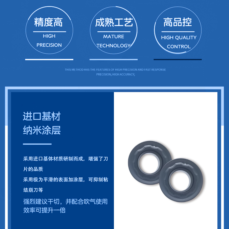 Numerical control dry cutting milling cutter sheet RDMT10T3MO-MX CP102 suitable for all-energy type materials under 45 degrees