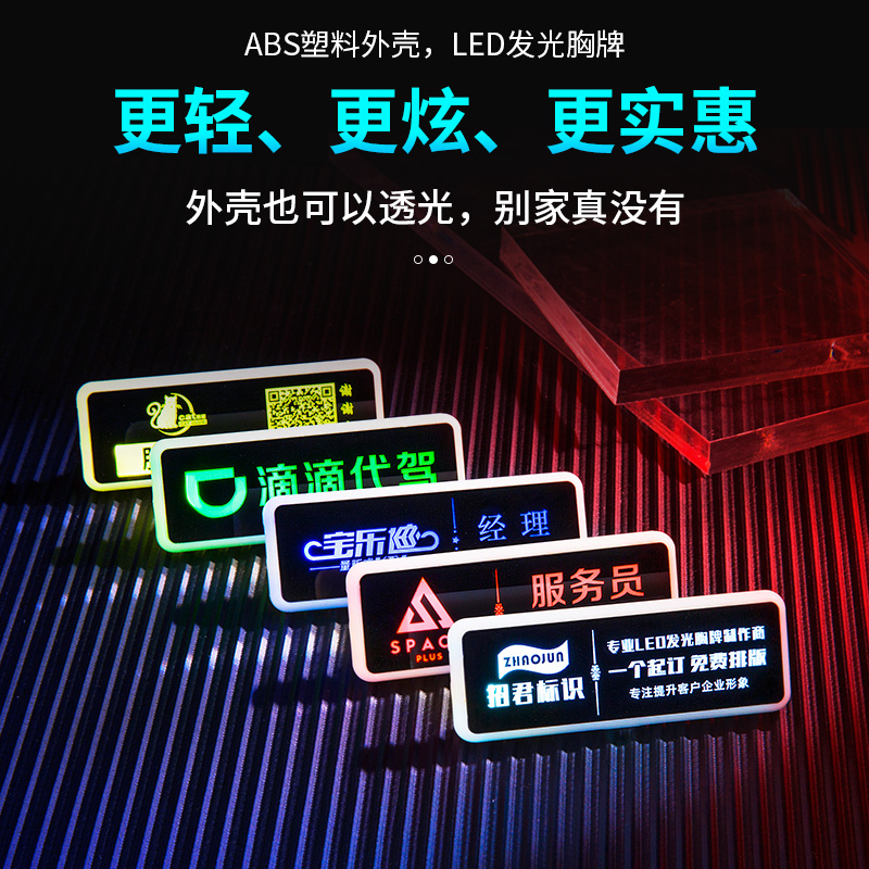 High-grade led luminous work brand custom badge display custom pin type magnet bar KTV badge driving light