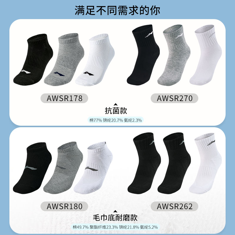 (Black & White Gray) 3 Doubles (Towel Bottom) (Low Top) AWSR180-1 (White and White) 3 Doubles (Towel Bottom) (Low Top) AWS 149-2 (Black Black Black) 3 Pairs (Towel Bottom) (Low Help) AWSR180-2 (Ash Ash) 3 Pairs (Breathable Thin Version) (Low Help) AWSR178-2 (Black & White Gray) 3 Doubles (Breathable Thin) (Low Help) AWSS151-2 (White & White) 3 Doubles (Breathable Thin) (Low Top) AWSS151-1 (Black-and-White Gray) 3 Doubles (Breathable Thin) (Middle) AWSS123-1 (White-White)3 Doubles (Breathable Thin)(Middle)AWSS123-2 (Black-Black)3 Doubles (Breathable Thin)(Middle) AWSS123-3 (Black-and-White Bottoms) (Towel Bottoms) 3 Doubles (Towel Bottoms) (Towel Bottoms) (Middle-Sleeves) AWSR262-2 ( Black Black Black) (Towel Bottom) 3 Pairs (Towel Bottom) (Middle Top) AWSR262-2