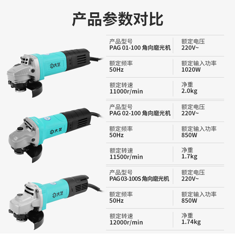 (factory standard) Dayi 01-100 angular mill 1020W (multi-function package) Dayi 01-100 angular mill 1020W (carbon brush package) Dayi 01-10