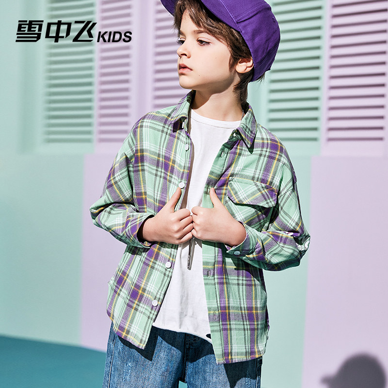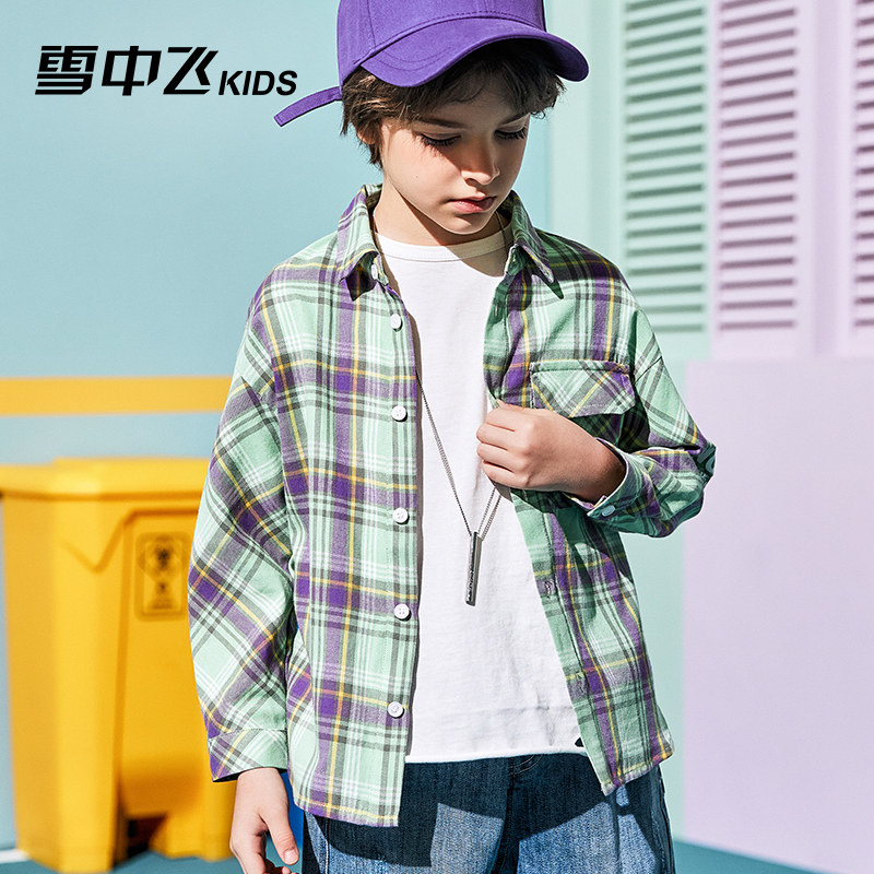 Snow Flying Boys Long Sleeve Shirt 2021 New Spring and Autumn Children's Clothing Korean Children's Shirts Loose Middle-aged Children's Handsome