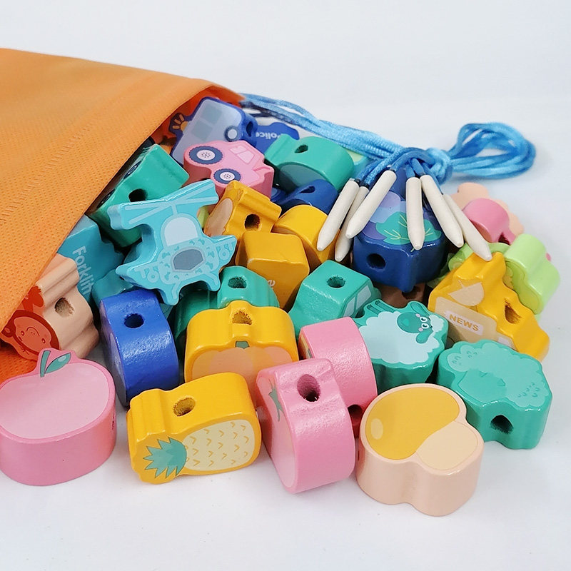 Large grain threading bead baby string bead wearing rope toy children early teaching puzzle building block fine action 1 year old baby 2