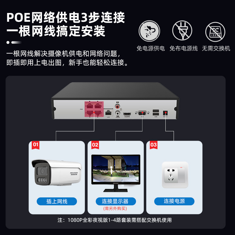 Sea Conway view outdoor night vision ultra high quality photo-head full-rehearsal 8-way poe cable monitor complete equipment system