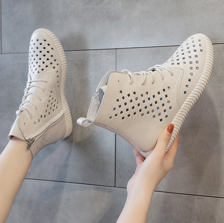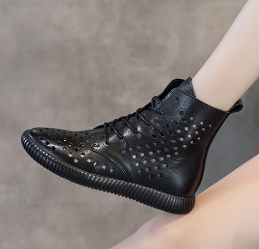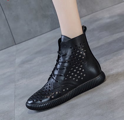Leather hollow Martin boots women's new all-match cool boots thick-soled flat-bottomed single boots retro soft leather casual short boots