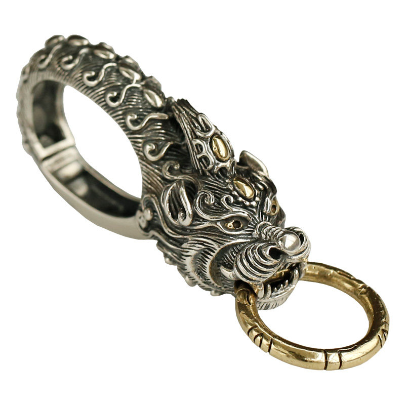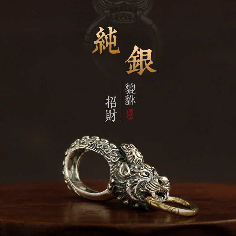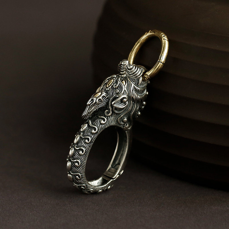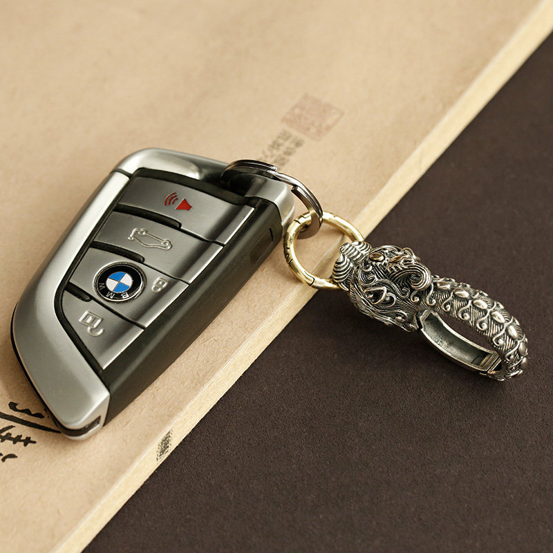 S925 sterling silver waist hanging high-end car key pendant men's personality creative keychain lucky Pixiu key ring