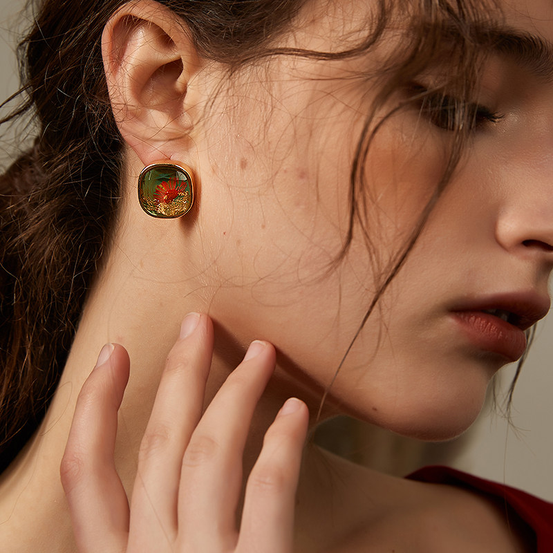 French hand-made earrings Tea retro stud earrings earrings summer simple niche high-end sense ear clip no pierced ears female tide