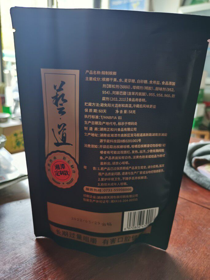 Betel nut, dried fruit, water, maltose, wolfberry, white sugar, edible salt, practical vegetable oil, food additive
