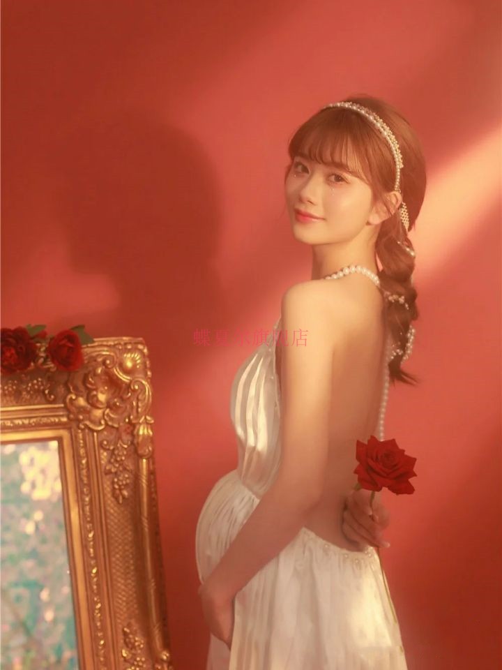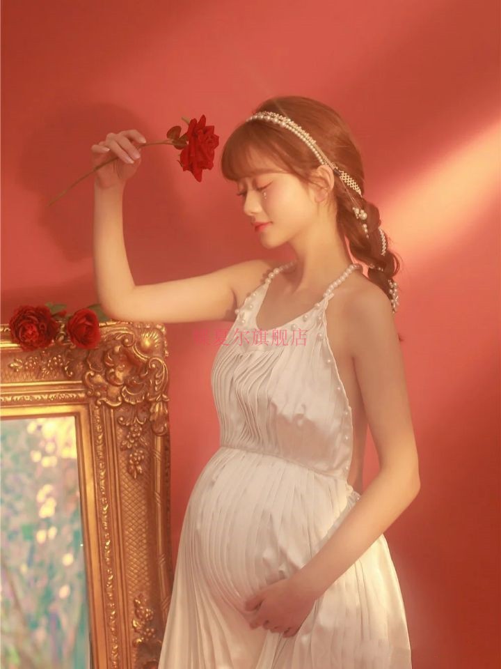 2021 new movie studio photography Write a real sexy private room Open Back Pearl Pregnant Woman Photothemed Wedding Gown-Taobao