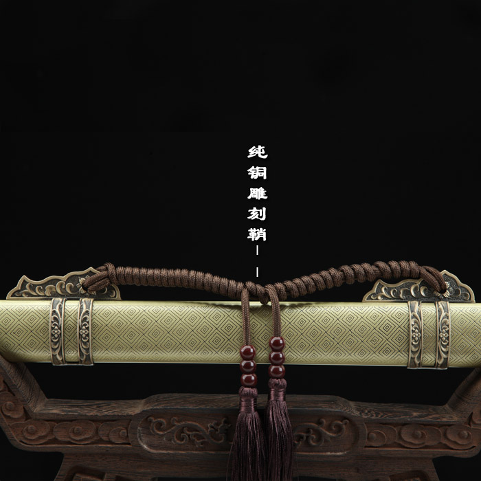 Longquan City Pure Handmade Tang Sword Flower Pattern Steel Burning Blade Treasure Sword Boutique Collection Long Version Bronze Fitting Integrated Knife Sword Unopened Blade