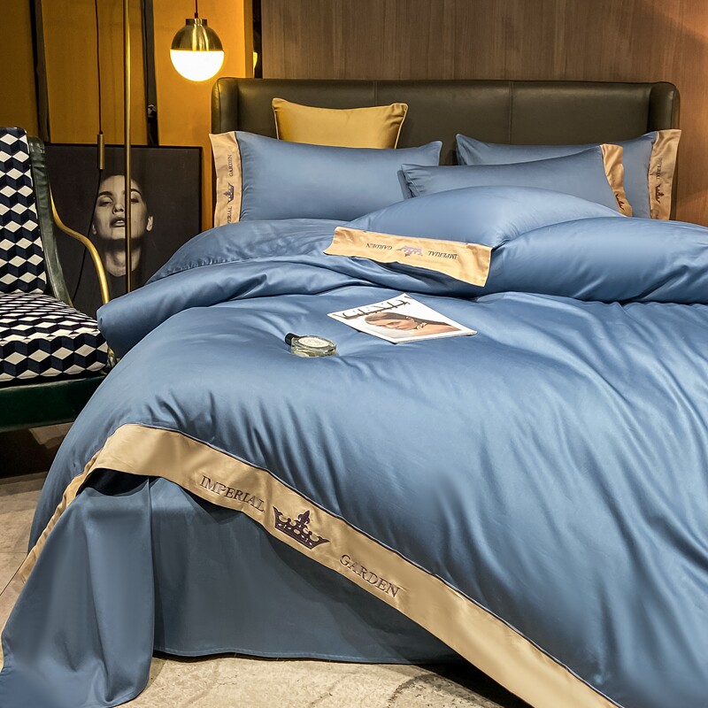 60 long fluff cotton four piece cotton pure color is simple to set 1 5m bed 1 8m bed pure cotton bedding