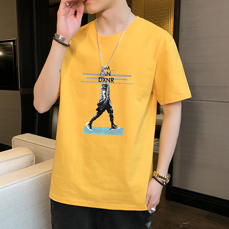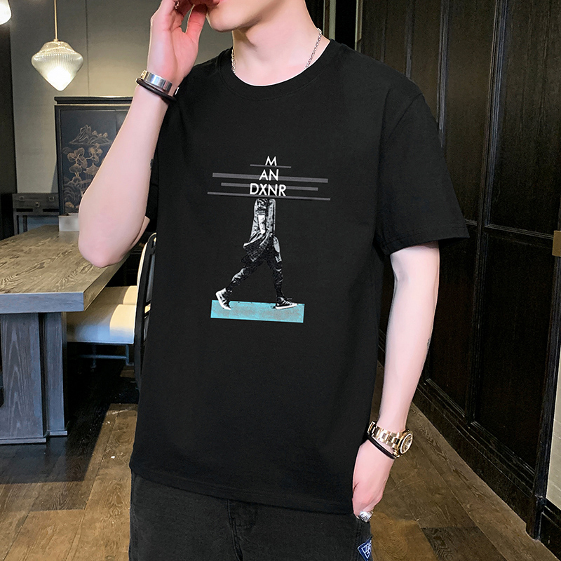 Summer Xinjiang pure cotton short-sleeved t-shirt men's thin section trend ins round neck boys top clothes couple loose half-sleeved thin