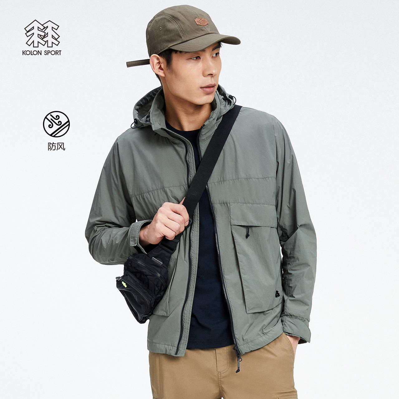 KOLONSPORT RED jacket windproof men's woven blouses hide cap outerwear outdoor sportswear male coat
