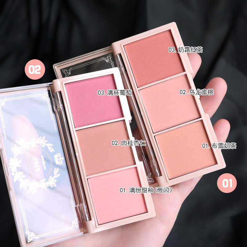 pipl three-color blush plate 2021 new girl cute peach milk tea color pink orange matte blush female