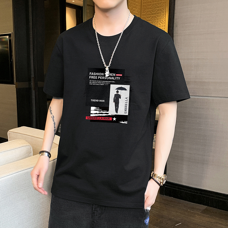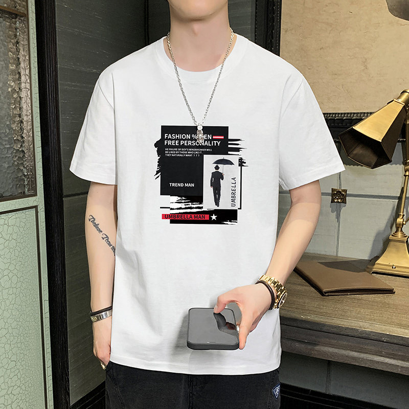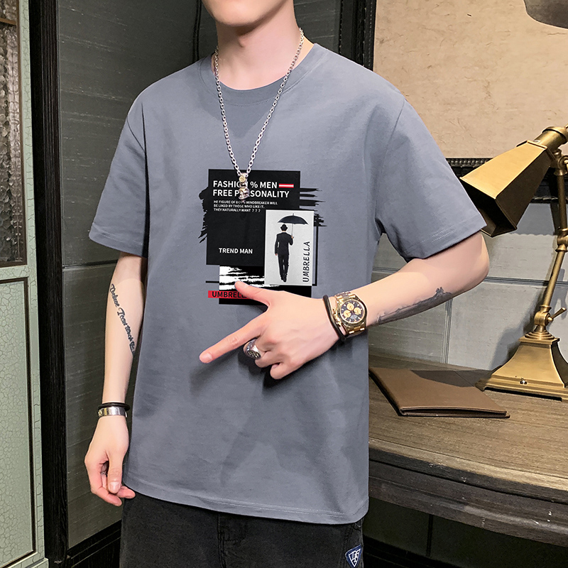 Short-sleeved men's tide brand ins trend all-match T-shirt new cotton loose and handsome college student couple sports clothes
