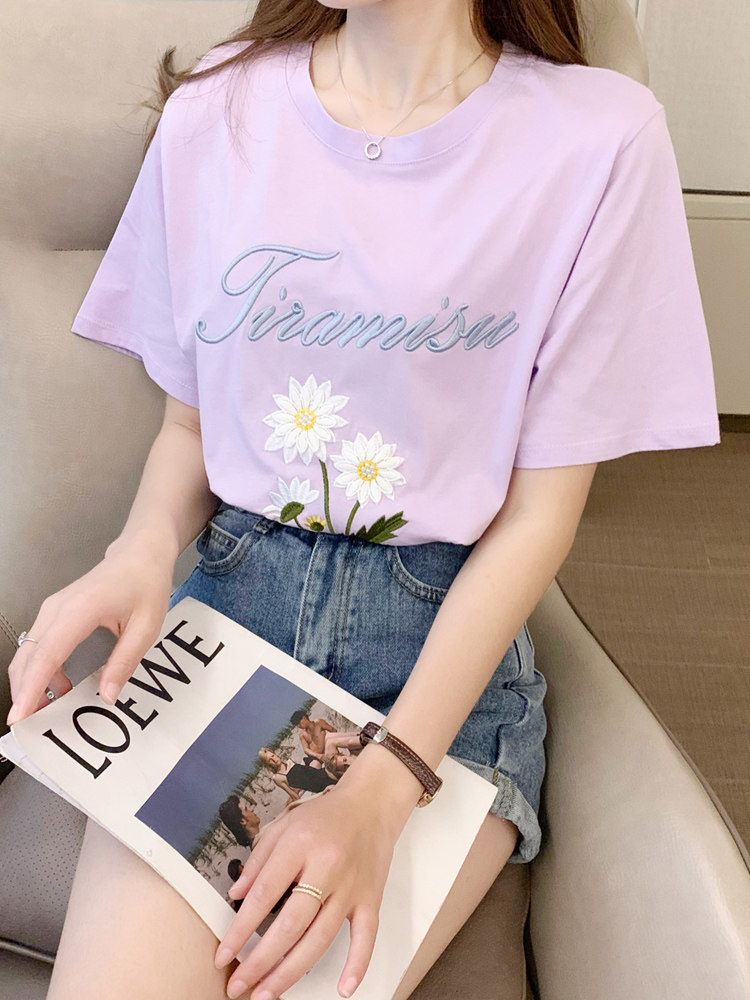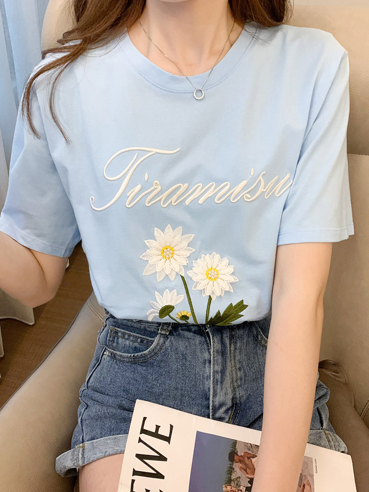 European station white T-shirt women's short sleeve loose ins tide 2021 summer new design sense niche round neck top