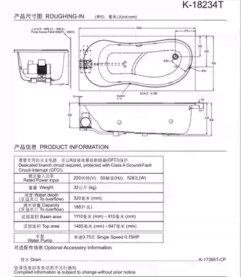 Kohler bathtub household small apartment toilet bathroom acrylic bathtub Jacuzzi tub 18234T