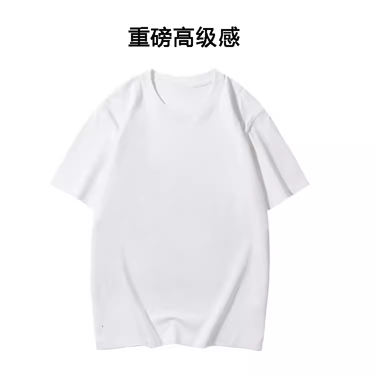 300g heavyweight American cotton short-sleeved T-shirt round neck solid color men's thick opaque bottoming shirt pure white T-shirt for men and women