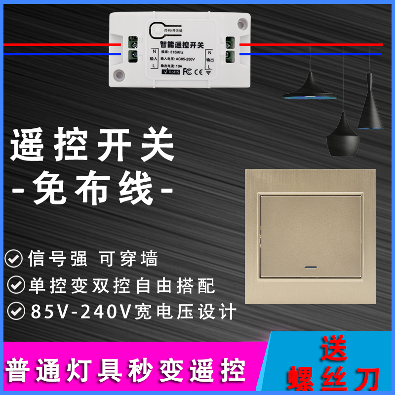 Remote Control Switch Home Wireless Panel Controller 220V Bedroom Lamp Free wiring double cut remote casual switch