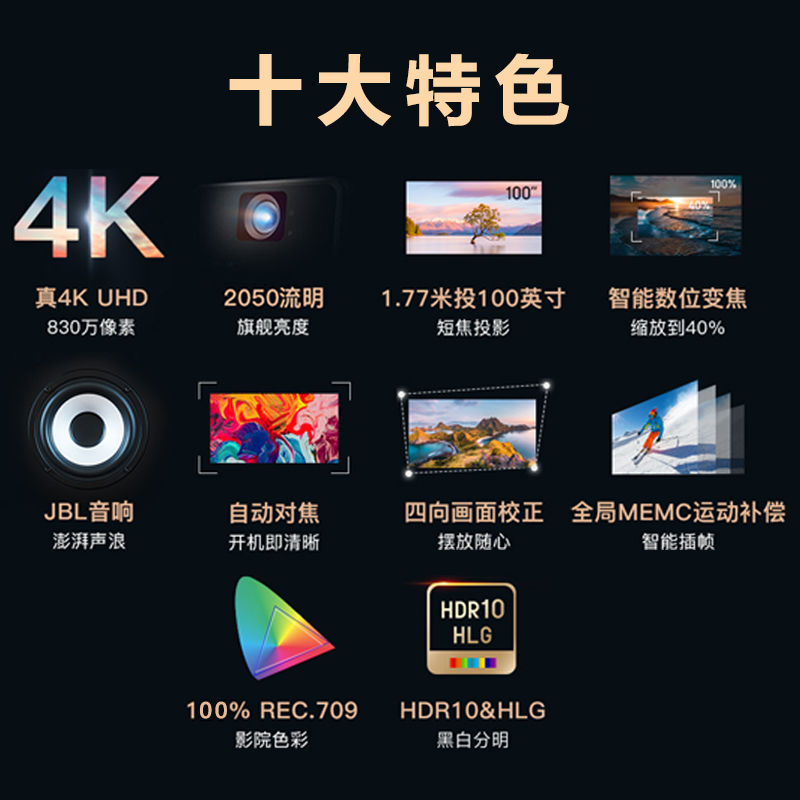 Viewsonic Viewsonic Q10 new product debut True 4K ultra HD home smart home theater short-focus projector Bedroom office net class mobile phone screen mirroring wireless 3D