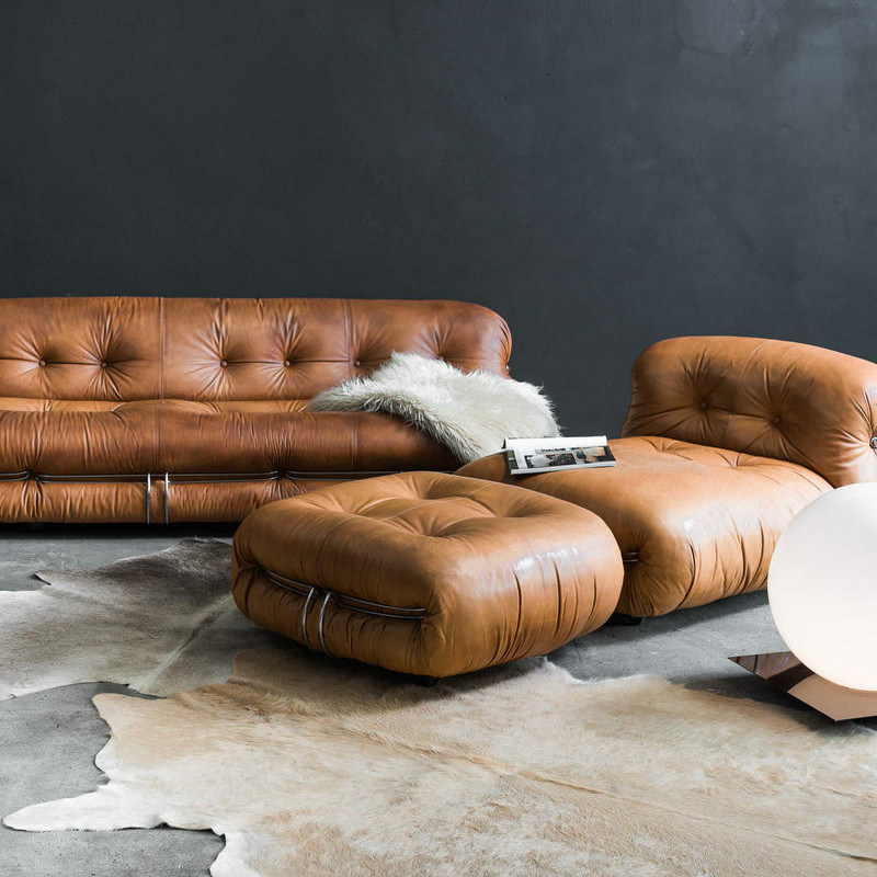 Vintage living room fabric double sofa small apartment bedroom beige lamb wool designer single chair sofa