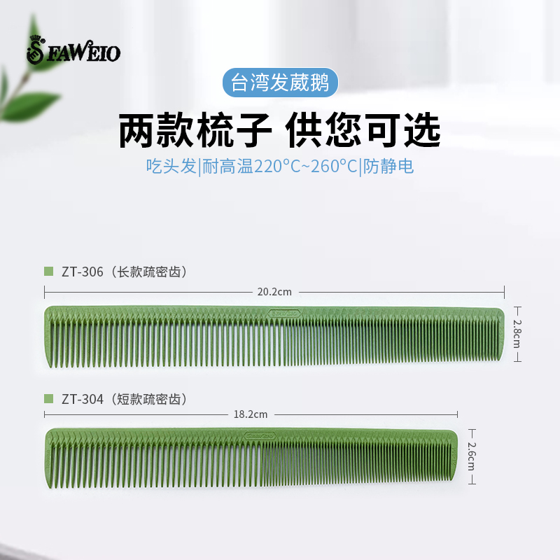 Taiwan imported hair Wei goose comb hair cutting comb high temperature resistant anti-static hair comb ZT-304 306