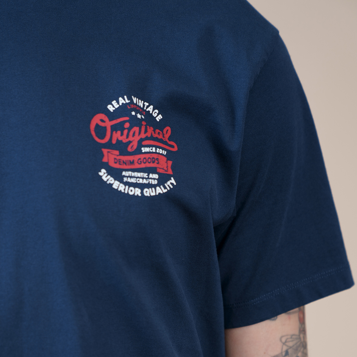 Simwood minimalist men's clothing (body version type) new behind printed round collar European and American leisure short sleeve T-shirt man