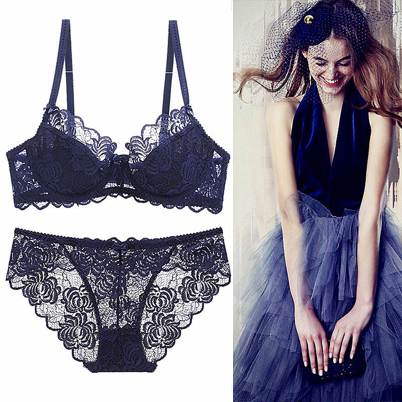 2021 new summer ultra-thin underwear big breasts show small gathered bra lace seamless underwear sexy fun suit