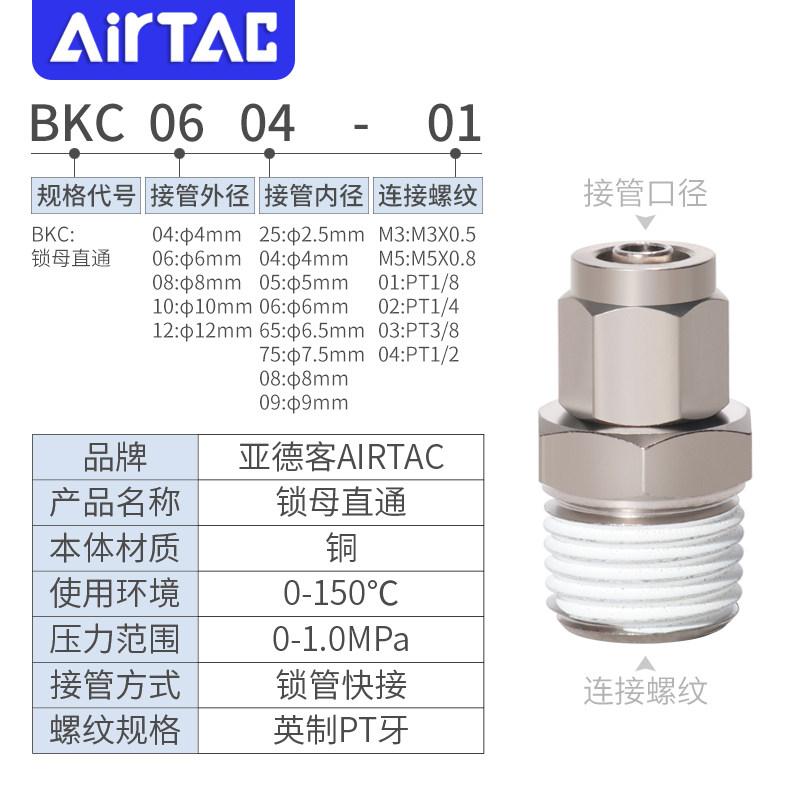 Yade politely BKC lock mother straight connector 0425-M5 0604-01 0805-02 1065-03 04