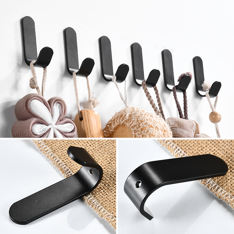 Free Punch Dressing Room Hook Black Wardrobe Entrance Door Cloths Hood Hook Bathroom Toilet Tile Towels Hook Single