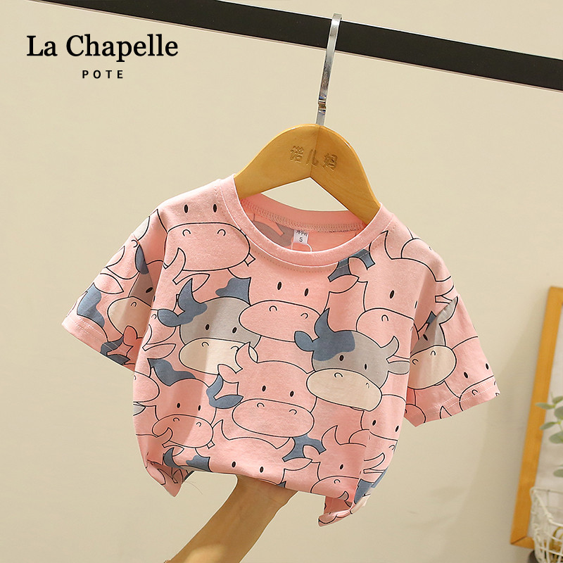 Lashabel Children's Short Sleeve T-shirt Boys and Girls Summer Clothing Baby Gas Pure Cotton Half-sleeved