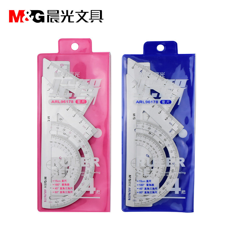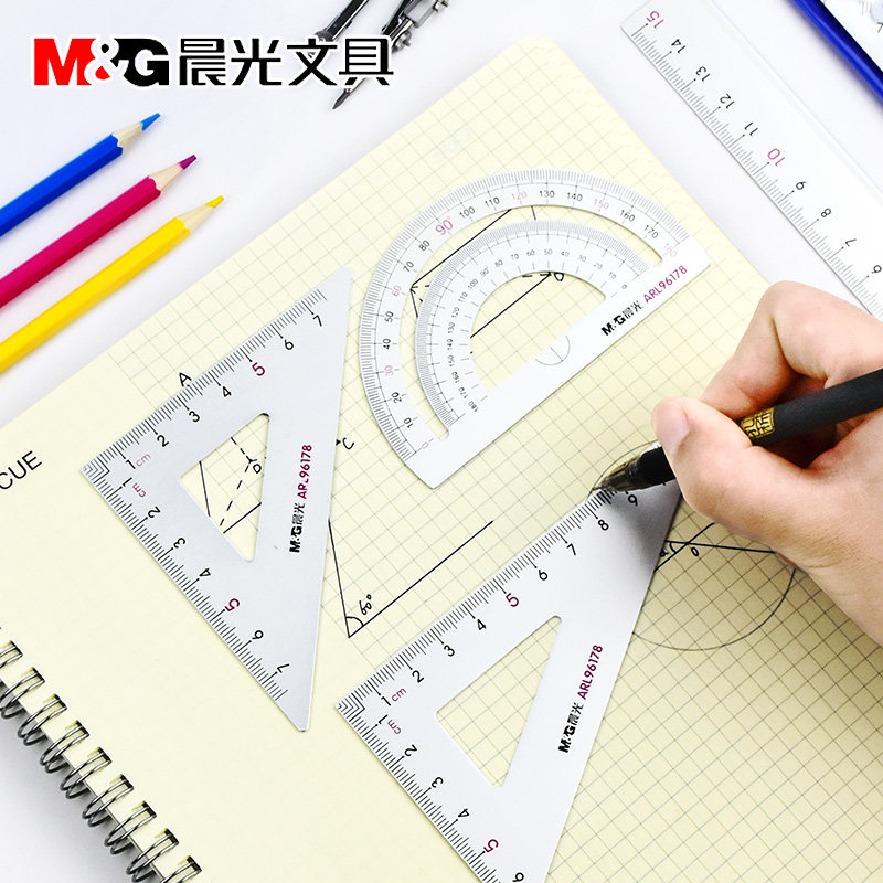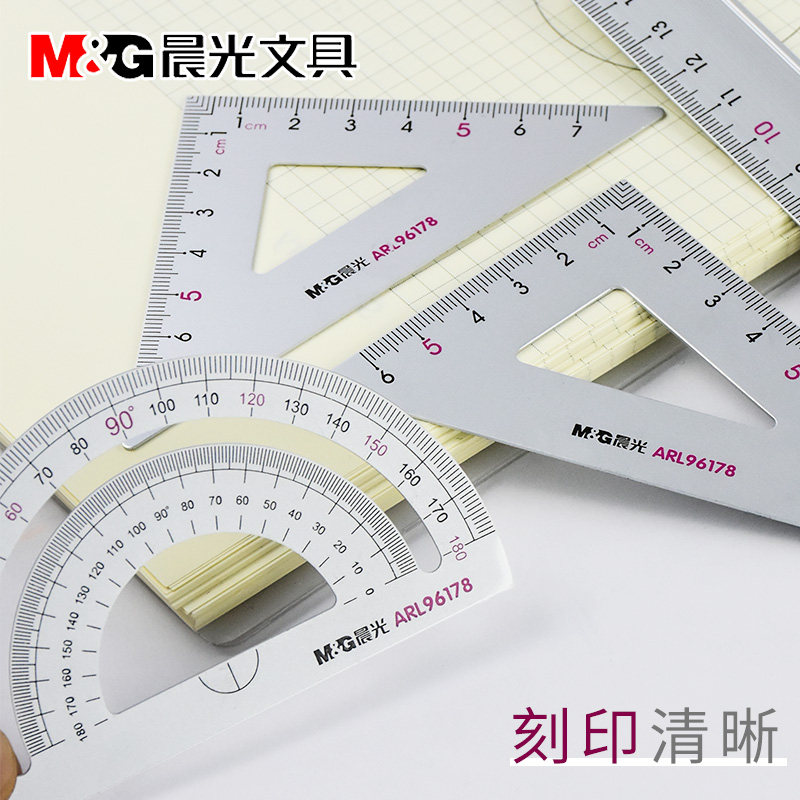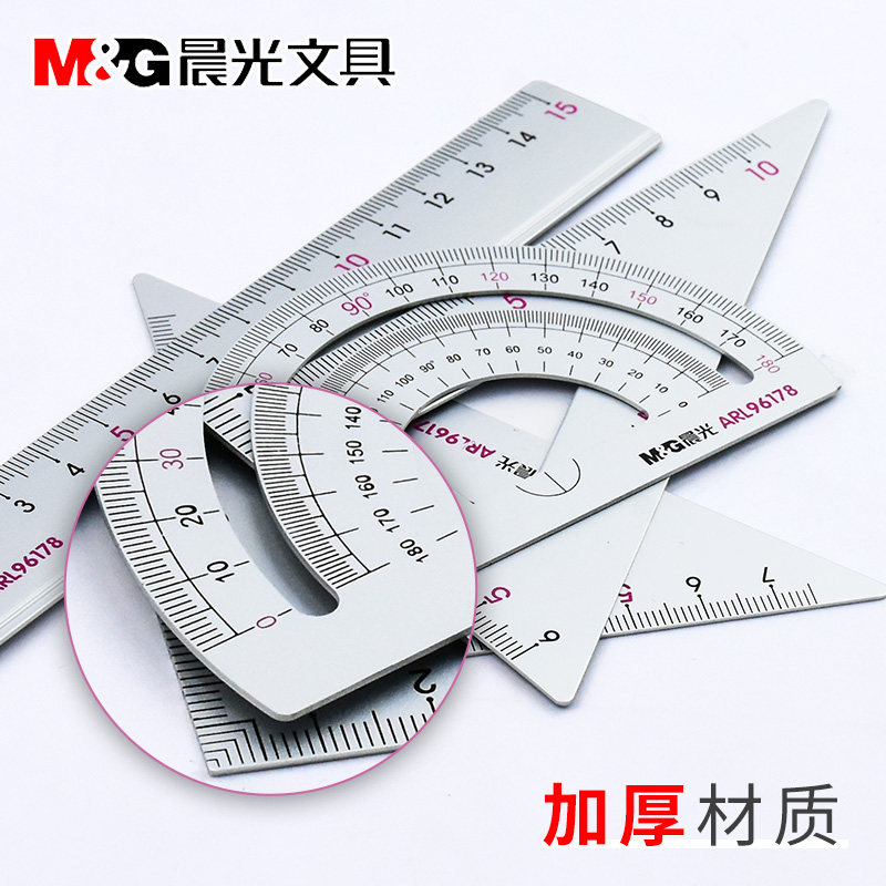 Chenguang ruler set for students stationery Aluminum alloy set ruler straight ruler triangle protractor combination for primary school students multi-functional metal compass set Insts cute products exam bag