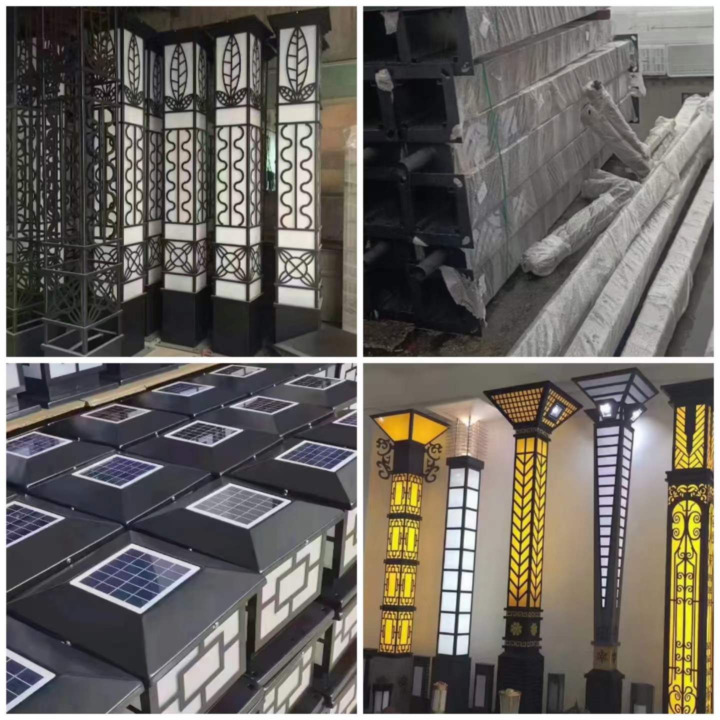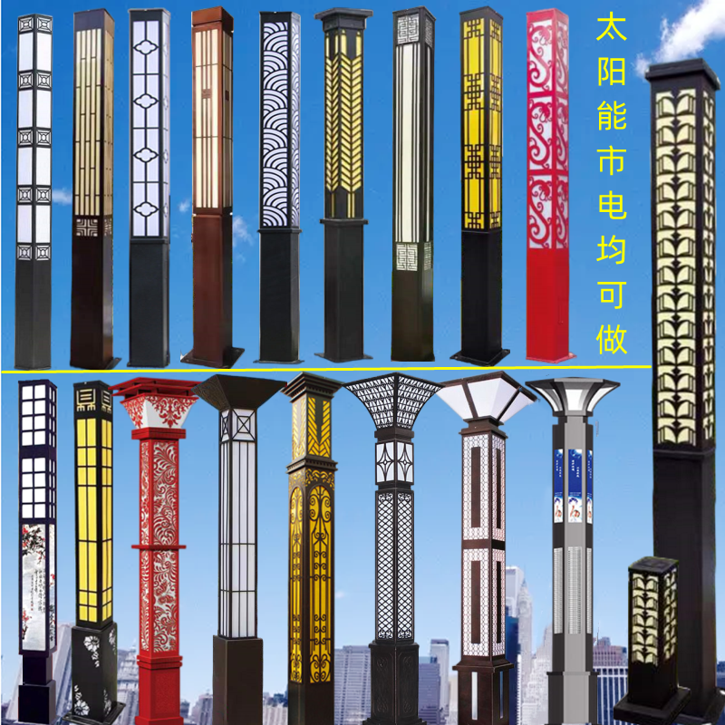 Solar landscape light outdoor park lawn Chinese style 2 antique square lamp post 3 meters new waterproof garden street light