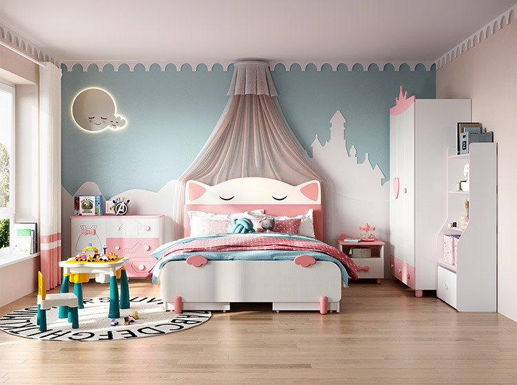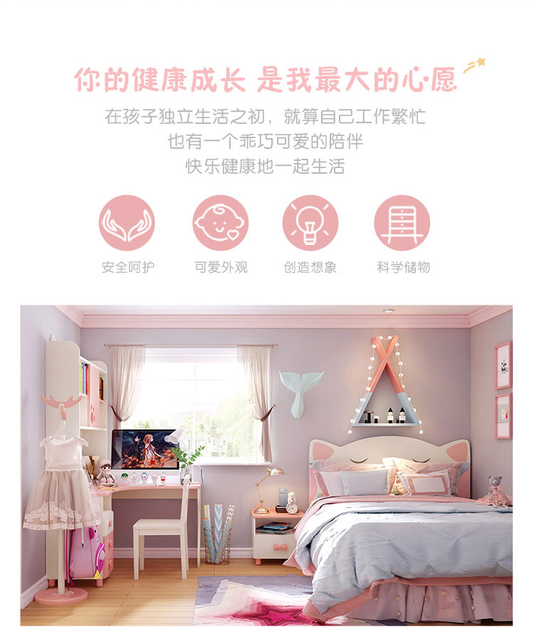 Lin's wood industry children's bed girl princess bed linen 1 5 m adolescent girl children's house furniture combination suit EA1A