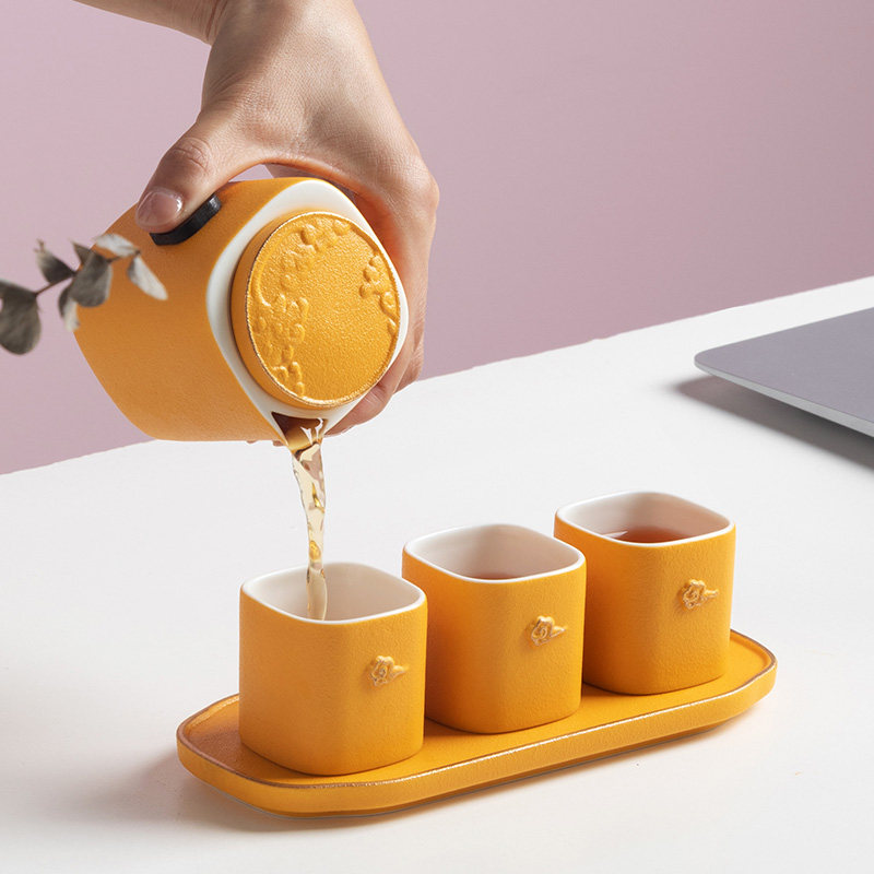 Modern simple Kung Fu tea set Home light luxury ceramic tea set Small gift box office dry tea tray