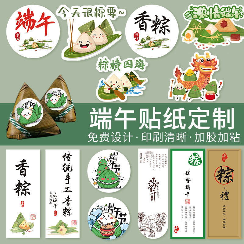 End of the Dragon Boat Festival stickers Glutinous Rice Dumplings custom Enterprise logo Trademark Gift Boxes Packaging Accompanied By Hand Seal Stickers Design Pure Handmade Meat Rice Dumplings Taste Adhesive Baking Snowy Lady Dessert Stickers set to do