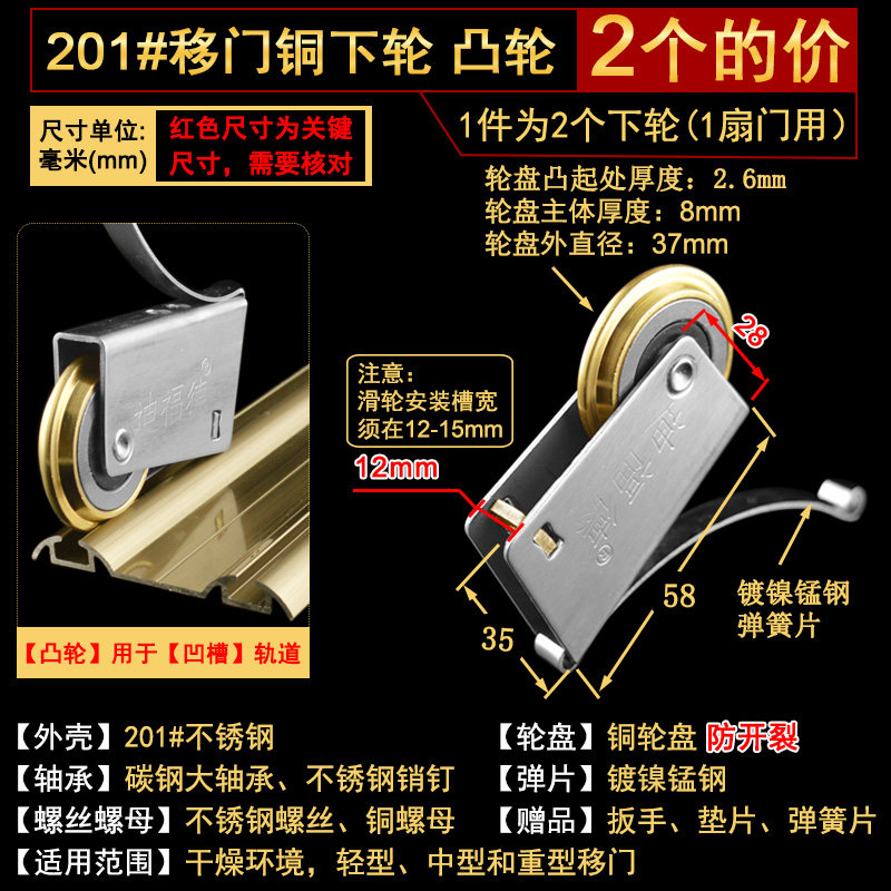 Door pulley bathroom push door cam closet door wheel stainless steel single copper gravure wheel kitchen partition door groove wheel