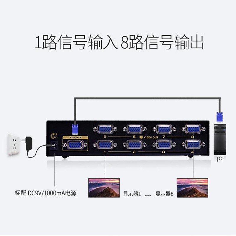 Wins for (VS-5008) high-definition VGA dispenser iron shell 8 oral fit original clothing line 500MHZ TV computer film 10%-8 divider