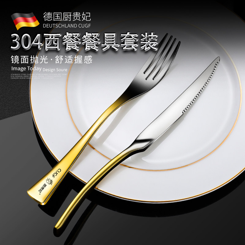 German CUGF Western Dining Steak Knife 304 Stainless Steel Fork Spoon Three Sets Home European Style Knife Fork Plate Two Sets