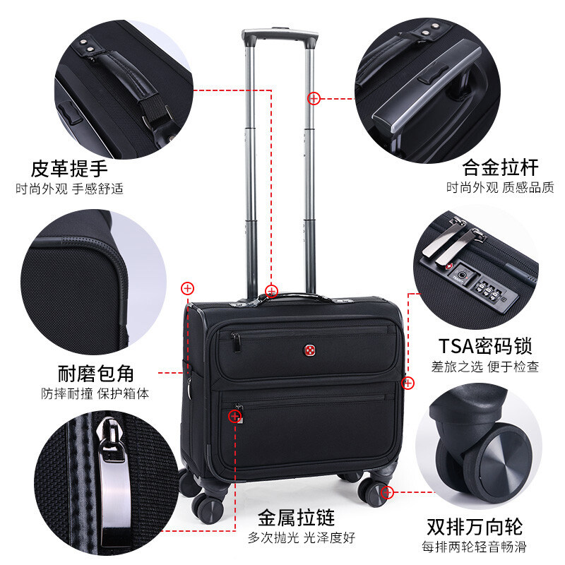 Swiss sergeant knife trolley case universal wheel 16 inch business travel boarding case password unisex small suitcase