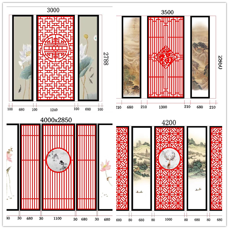 New Chinese-style yarn painting cut-out partition MDF fence lattice screen simple carved board semi-transparent entrance decoration