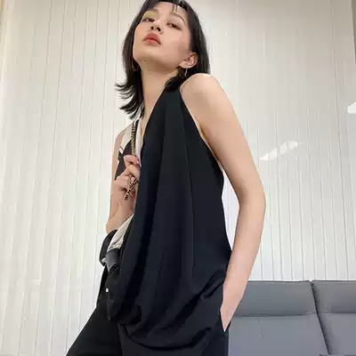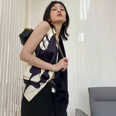 SOULKISS publicity fried street halter _ stitching design sense printed hanging neck heavy silk top women's summer