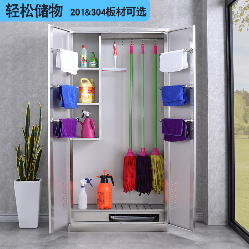 Stainless steel cleaning cabinet balcony cleaning tool broom mop storage cabinet factory workshop multi-grid tea cup cabinet