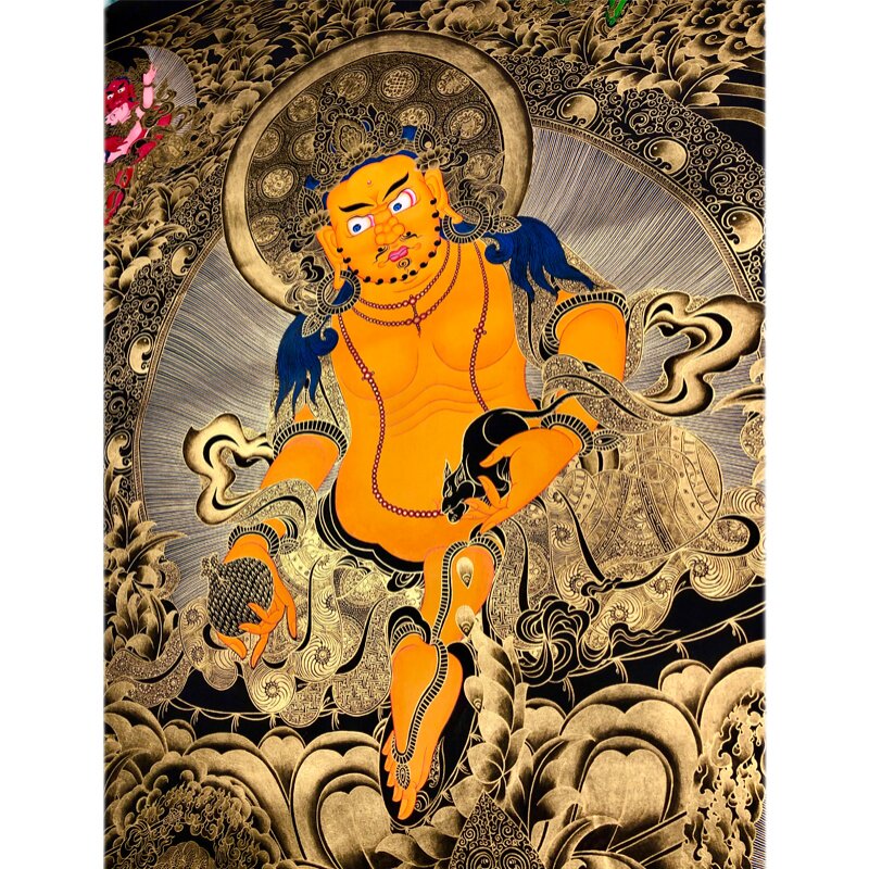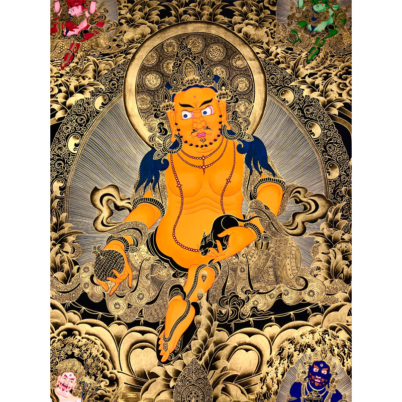 1 meter 2 huge black gold thangka five-way god of wealth yellow god of wealth Nepal pure hand-painted hand-painted Tibetan hanging painting to attract wealth