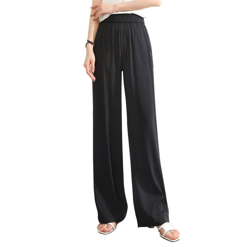 Copper ammonia silk wide leg pants women's summer thin section high waist hanging red casual pants loose straight tube thin black mopping