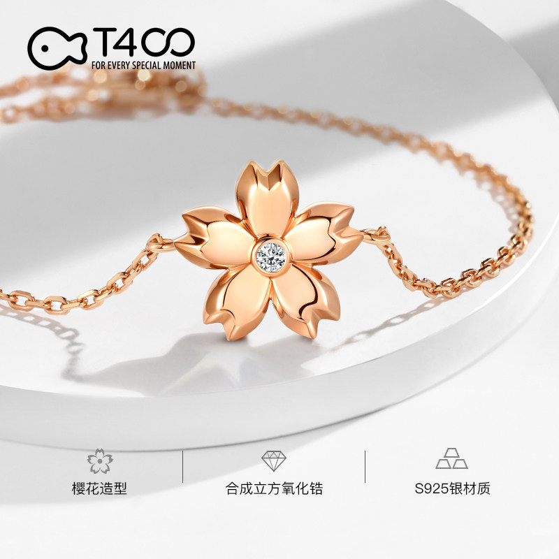 T400 cherry blossom bracelet female sterling silver ins niche design rose gold 2021 new high-end sense hand jewelry to send girlfriend