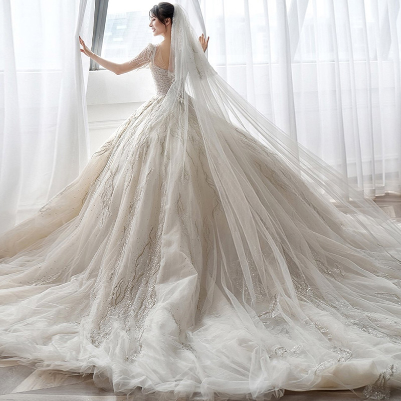 Law-style main wedding dress 2022 new bridal tug lavish reworked gown senior feel Jane about pregnant woman little child