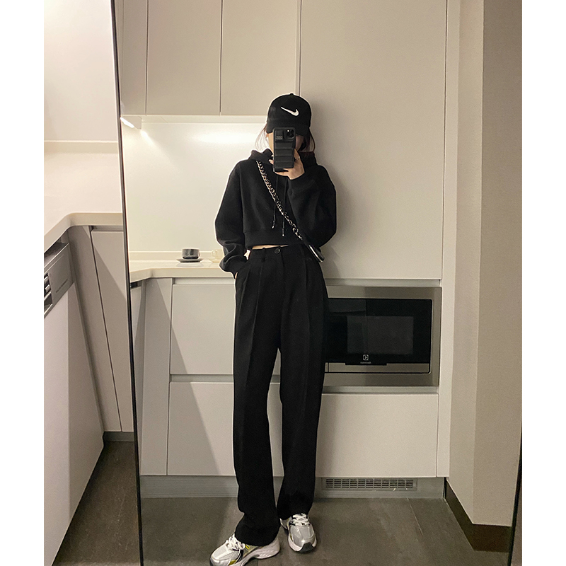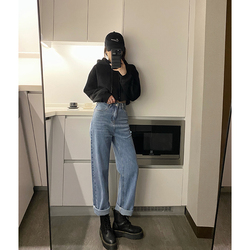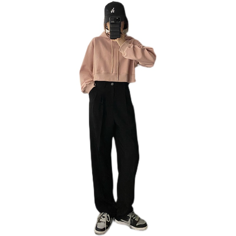 HHYEEE round neck pullover high waist short sweater women's 2021 spring new all-match Korean style loose top