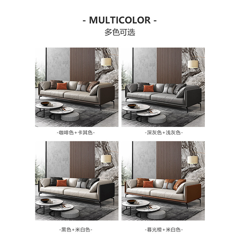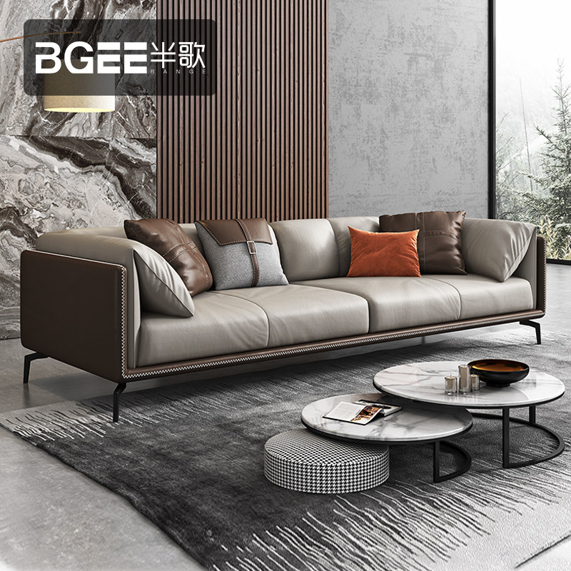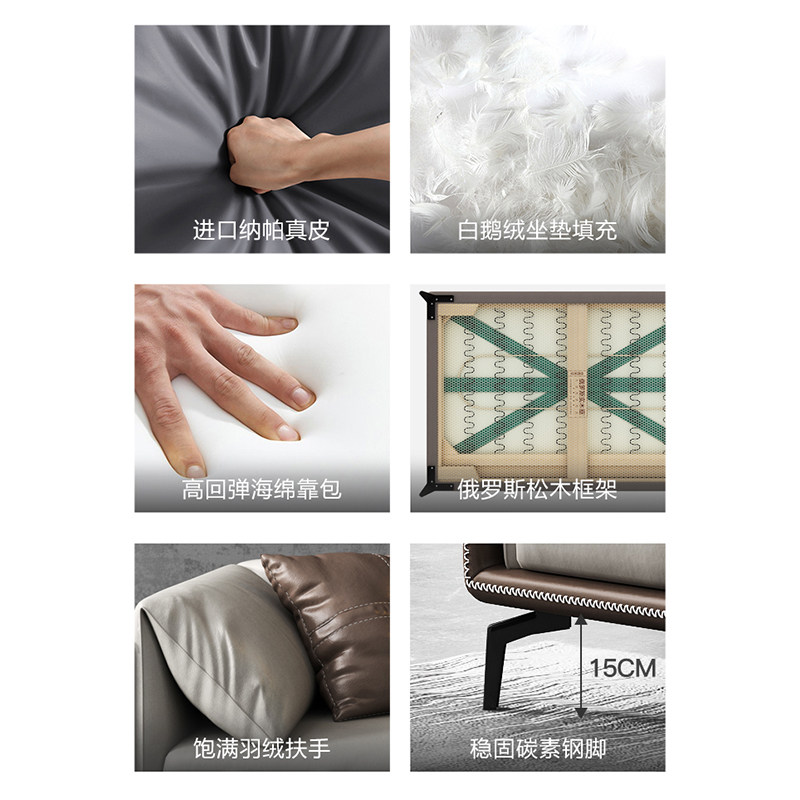 Semi-song-style minimalist real leather couch minimalist modern Nordic Living room Corner Head Layer Bull Leather Combo size family Type